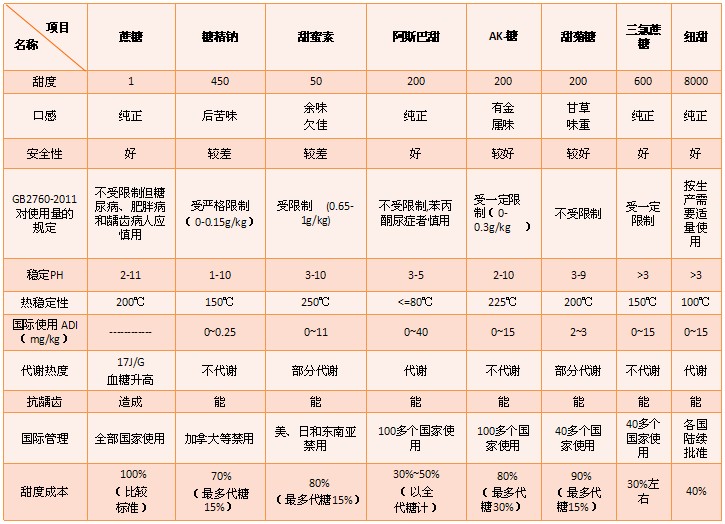 紐甜作為甜味劑在保持產(chǎn)品極佳的風(fēng)味的前提下,可減少或代替糖的添加量,降低產(chǎn)品熱量,是開發(fā)無糖食品的佳代糖甜味劑。